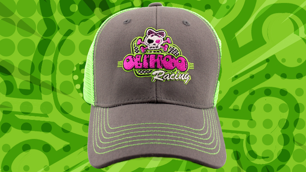Olihoo Racing Embroidered Logo, Olihoo Green/Gray, Mesh, Snap Back Adjustable Trucker Hat
